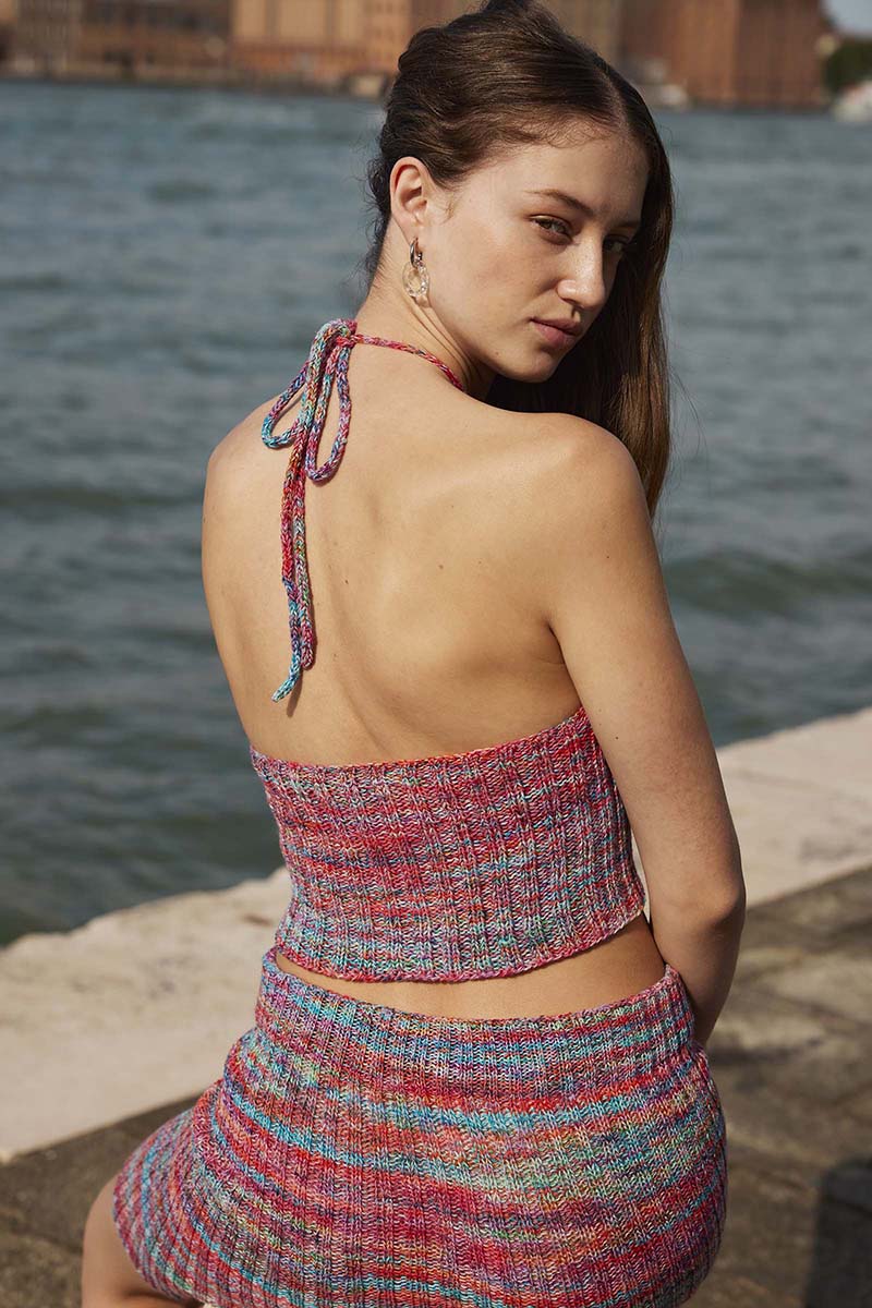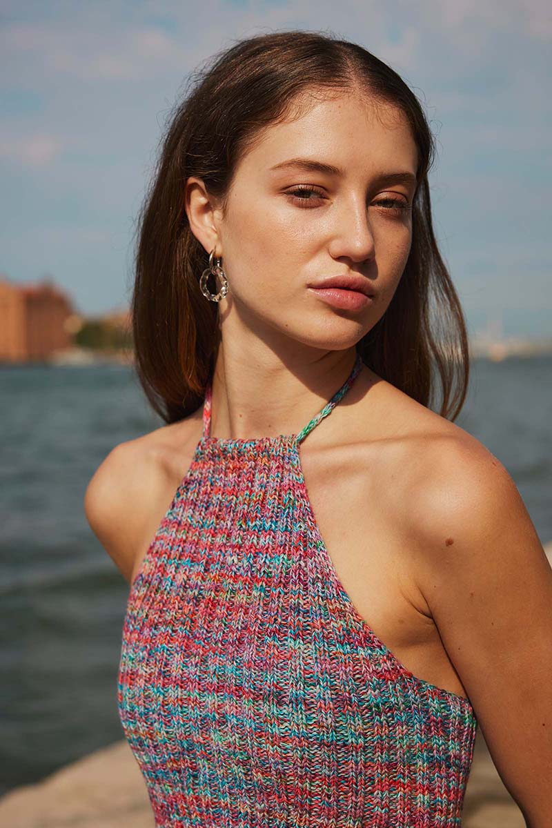 As if sung into shape by the tide, SIREN’S CALL rises from yarn conjured by a secret spell. This halter top is made for those who drift between land and legend.